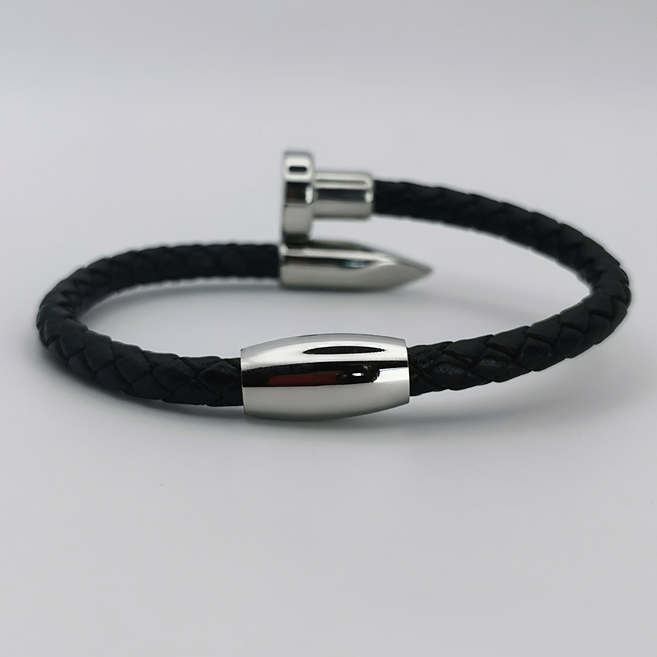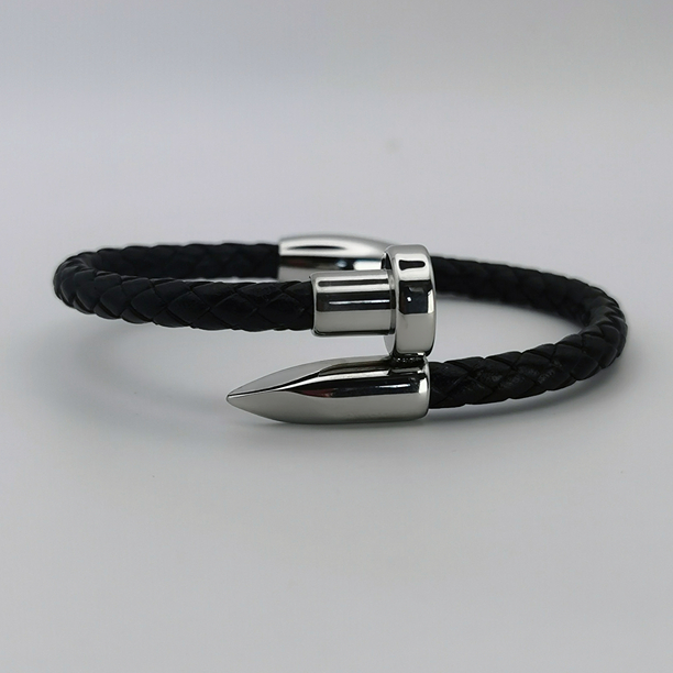 Zakończenie w kształcie stylowej, srebrnej głowicy dodaje bransoletce charakteru i jest śmiałym, ale eleganckim akcentem. Wykończenie to jest nie tylko ozdobą, ale również funkcjonalnym zapięciem, które jest łatwe w obsłudze i zapewnia bezpieczeństwo noszenia.